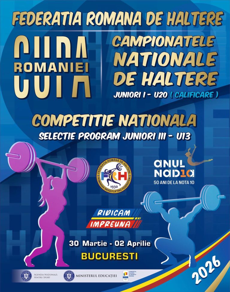 💥 In Sala de Atletism “Ioan Soter” din incinta Complexului Sportiv National “Lia Manoliu”, din Bucuresti, incepand din 30 martie si pana joi, 02 aprilie, inclusiv, 95 de halterofili Juniori III (46 de fete si 49 de baieti), legitimati la 20 de structuri afiliate participante si 105 halterofili Juniori I (43 de fete si 62 de baieti), legitimati la 25 de structuri sportive participante, iau start-ul la cea de-a doua intalnire competitionala din Calendarul National de anul acesta: Campionatele Nationale de Juniori si Cupa Romaniei – Calificari (M+F) si Competitia Nationala de Selectie Juniori III U13 (M+F).